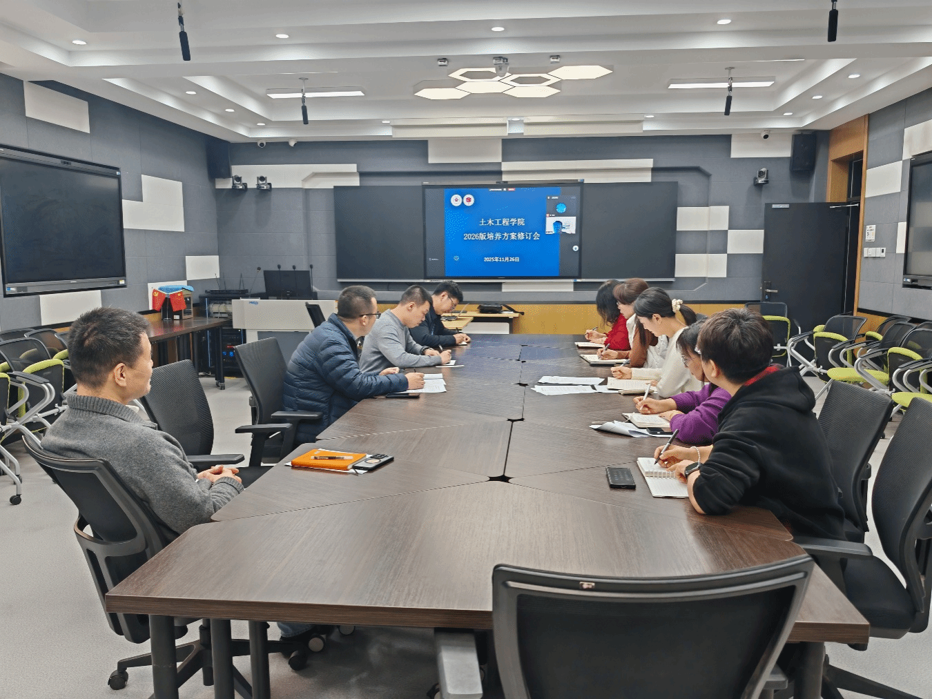 2025年11月26日,土木工程学院召开2026版培养方案修订会。参会人员包括学院领导班子以及各专业负责人等。