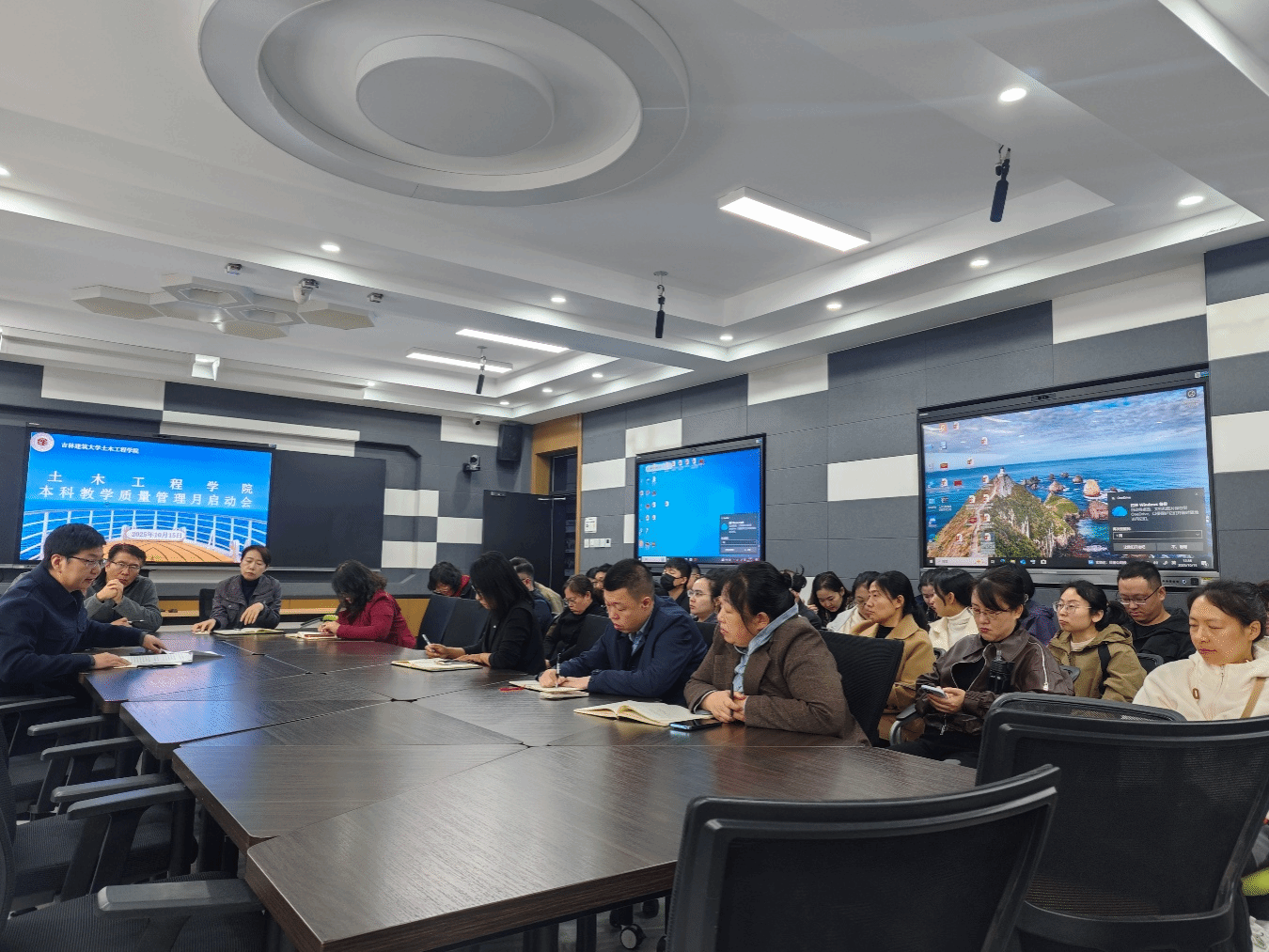 2025年10月15日下午,为迎接工程教育认证入校考查工作,土木工程学院召开本科教学质量管理月启动会。我院党委书记战冬梅、院长王勃、副院长李妍、副院长张庆及相关教师出席了会议,会议由副院长张庆主持。
